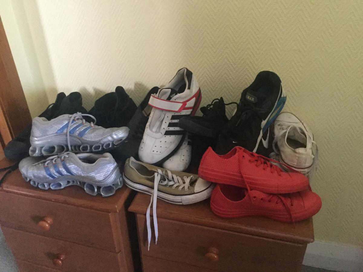 - Black/red/white adidas trainers (Velcro) - US men’s 11