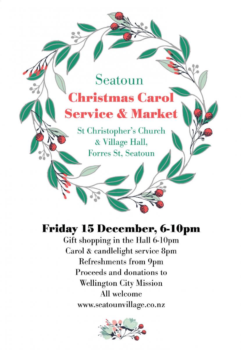 FRIDAY 15 December, 6 - 10pm. Fancy a spot of shopping at our quaint Christmas market in the Village Hall, Carols by candle light led by the fabulous Rev Tric Malcolm, City Missioner in St Christopher's then back to the hall for supper. Proudly supporting the Wellington City Mission.