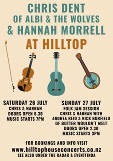 Tonight! - this Saturday 6.30 for 7pm;- Chris Dent/Albi is an earthy songwriter who keeps both feet on the ground while being expressive and heartfelt in his stories and music. He’s mostly performed with award-winning indie-folk band 'Albi & The Wolves' but has written songs in many… View moreTonight! - this Saturday 6.30 for 7pm;- Chris Dent/Albi is an earthy songwriter who keeps both feet on the ground while being expressive and heartfelt in his stories and music. He’s mostly performed with award-winning indie-folk band 'Albi & The Wolves' but has written songs in many different projects, including a collaboration with Mt Eden Dubstep that has amassed over one million streams, or his side project Sneakers which has a single with over 750,000 streams. Chris will be joined by the accomplished musician Hannah Morrell on the violin and maybe even the banjo. She is a seasoned touring musician who hails from Tasmania, Australia and has performed with the likes of The Dead Maggies (TAS), Claire Anne Taylor (TAS), Looking For Alaska, Finn Johanson, Holly Arrowsmith, and Jess Bailey (Fables).