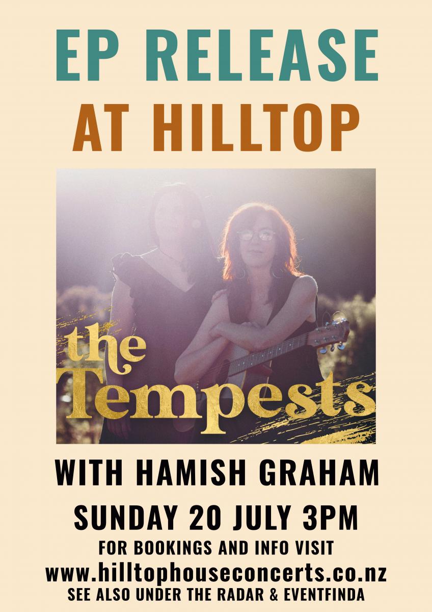 We celebrate the release of their original EP, The Tempests, which brings their vocal blend to the fore. They will be performing with their incredible band of musical maestros - Chris Armour and Rob Matthews, (guitars), Miklin Halstead (bass) and Richard te One (drums). Joined by their dear friend Hamish Graham (Hobnail, Shot band, Milkthistle & Love Shack) who opens their set with his lush and lively, beautifully crafted original songs.