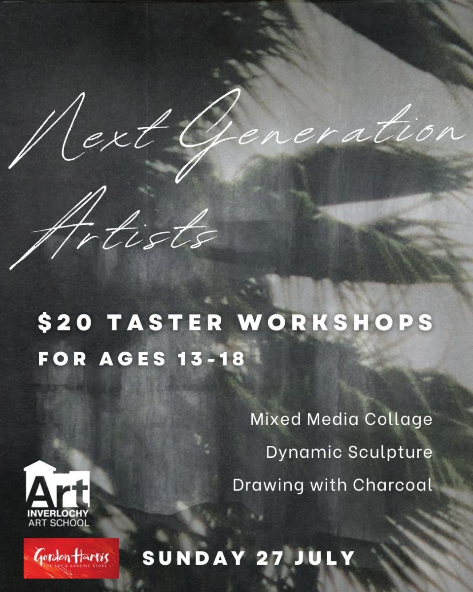 🌞 workshops include drawing with charcoal, mixed media collage and dynamic sculpture.