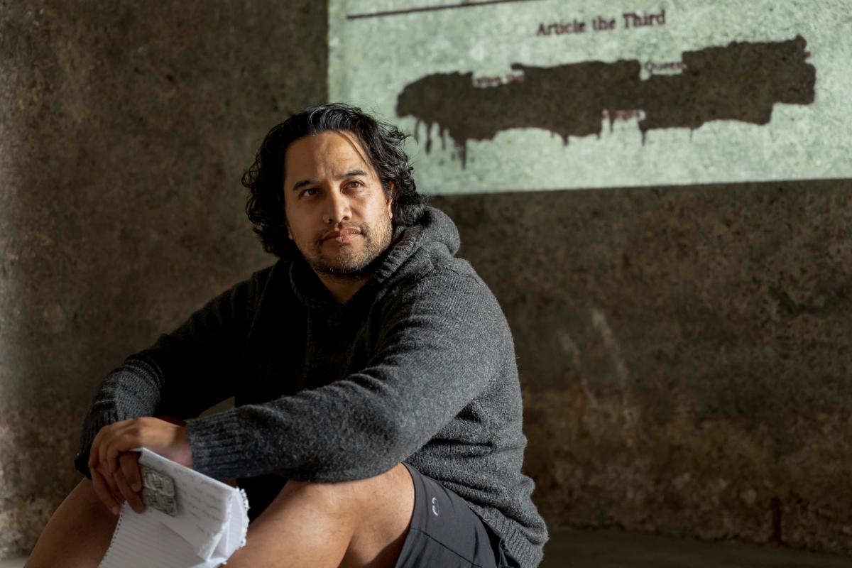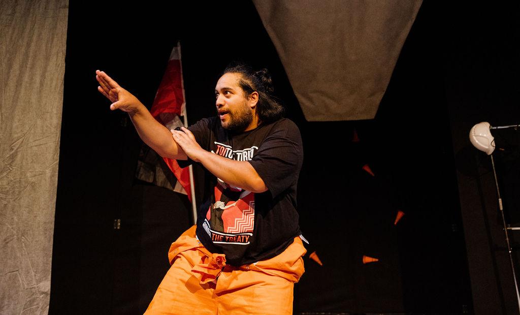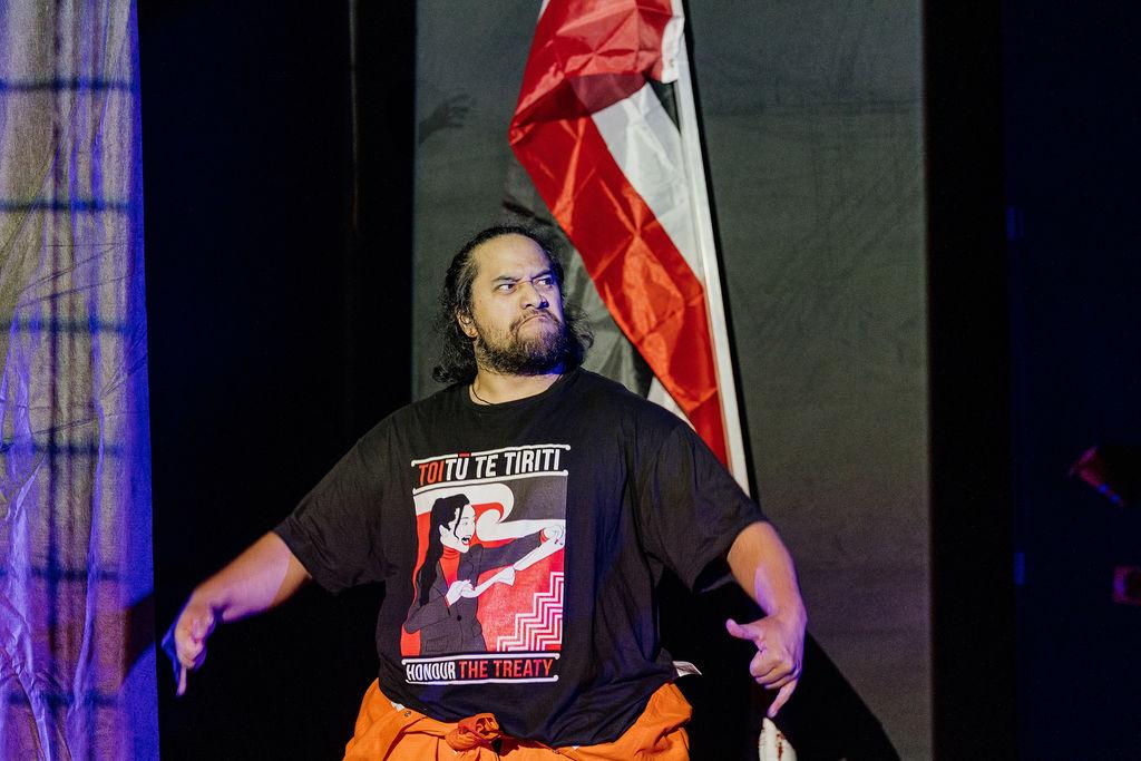 In December 2023 the group ‘Te Waka Hourua’ set the country alight when they painted over the English Treaty of Waitangi Exhibition at Te Papa to read… ‘No. Her Majesty the Queen of England the alien. ration the Queens veges.’ This ‘redaction action’ provoked strong opinions across … View moreIn December 2023 the group ‘Te Waka Hourua’ set the country alight when they painted over the English Treaty of Waitangi Exhibition at Te Papa to read… ‘No. Her Majesty the Queen of England the alien. ration the Queens veges.’ This ‘redaction action’ provoked strong opinions across Aotearoa – some sang their praises, others called for blood. While all of the artists were charged, only one received prison time: Te Wehi Ratana.