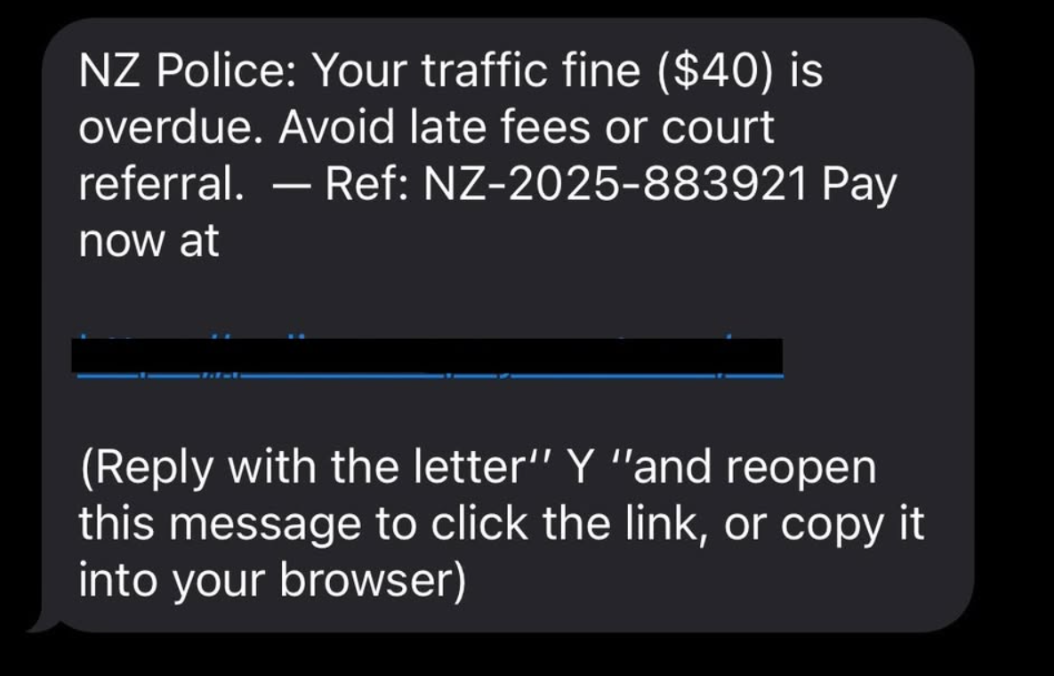 We’re aware of a text scam that includes a link to pay a fine, claiming to be from Police.