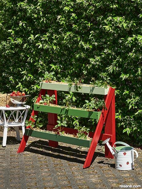 Short on garden space? No worries. A tiered planter is ideal for small spaces and can be used for strawberries, herbs or salad greens. We finished ours in Resene Forest Green, Resene Green House, Resene Caper and Resene Red Berry. Find out how to create your own tiered planter with these easy step … View moreShort on garden space? No worries. A tiered planter is ideal for small spaces and can be used for strawberries, herbs or salad greens. We finished ours in Resene Forest Green, Resene Green House, Resene Caper and Resene Red Berry. Find out how to create your own tiered planter with these easy step by step instructions.