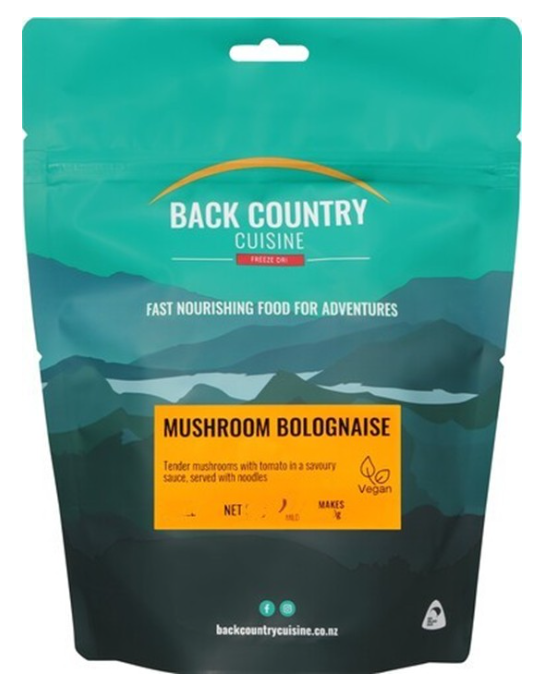 Back Country Cuisine brand Mushroom Bolognaise and Spaghetti Bolognaise
