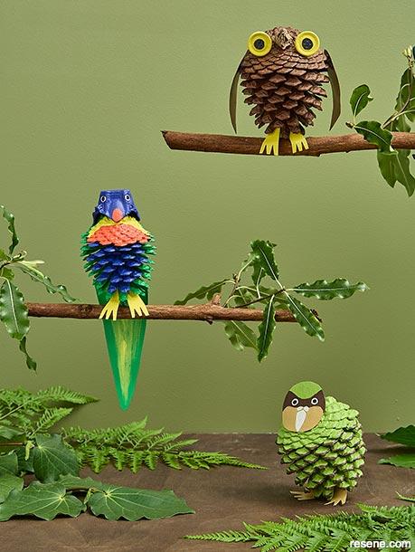 These kākāpō, rainbow lorikeet and ruru birds are a hoot for the kids to make using pinecones and their favourite Resene colours. Find out how to make and paint your own feathered friends with these easy step by step instructions.