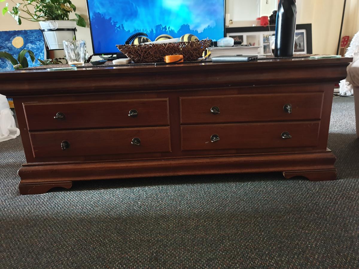 Free couch and coffee table as City Mission doesn't do pick up on weekends anymore. We also have a few bags of clothing that we need help dropping off to City Mission or Salvation Army as we don't have a car...