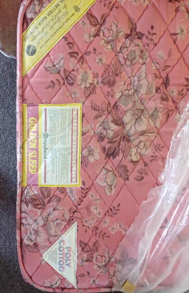Mattress currently in original plastic bag to keep dust free and transporting but does have a small tear in corner underneath, See photo. Always used with mattress protector No marks or stains.