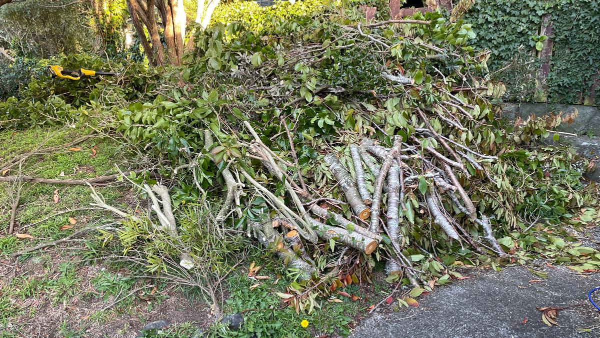 Large amount of tree trimmings, branches and trees. Suitable for firewood/kindling