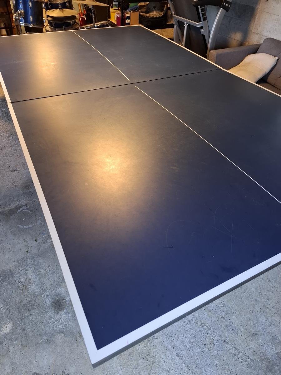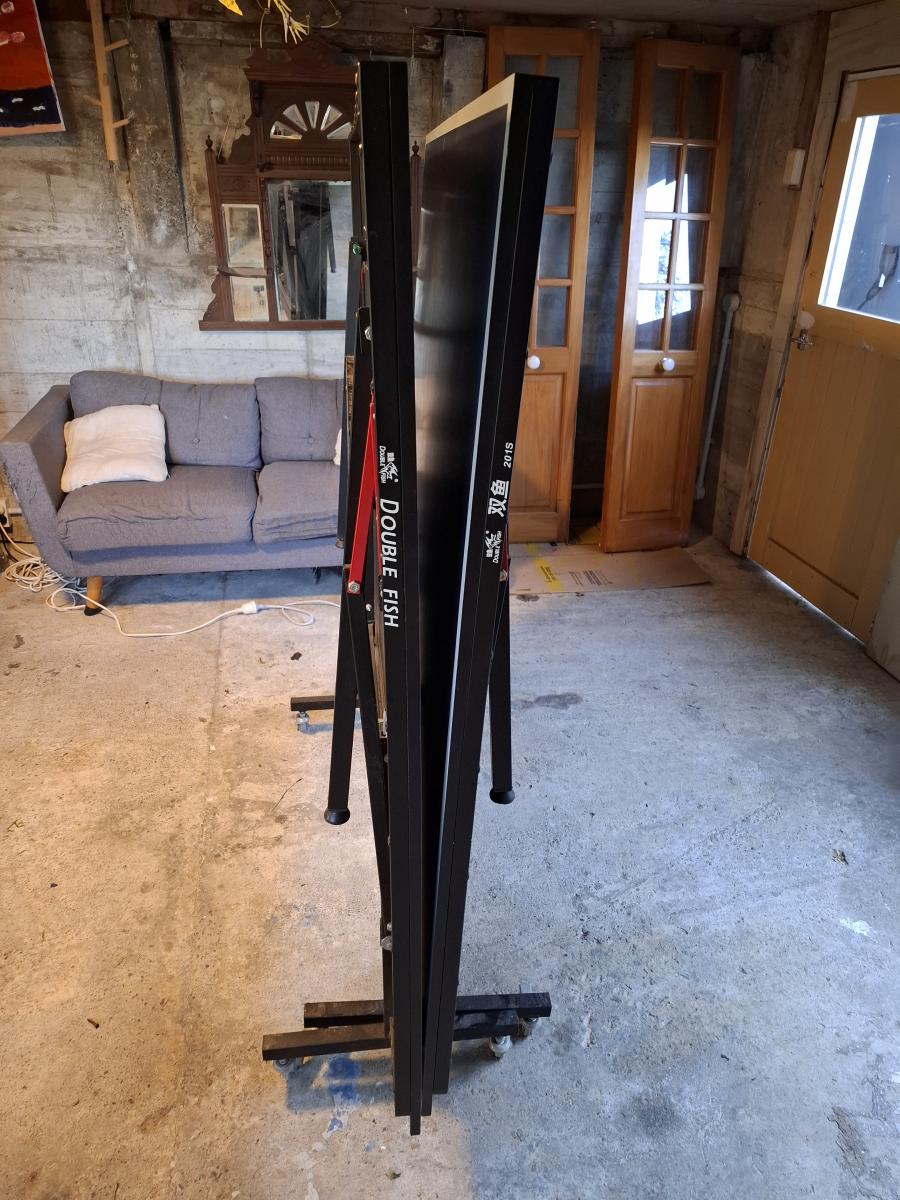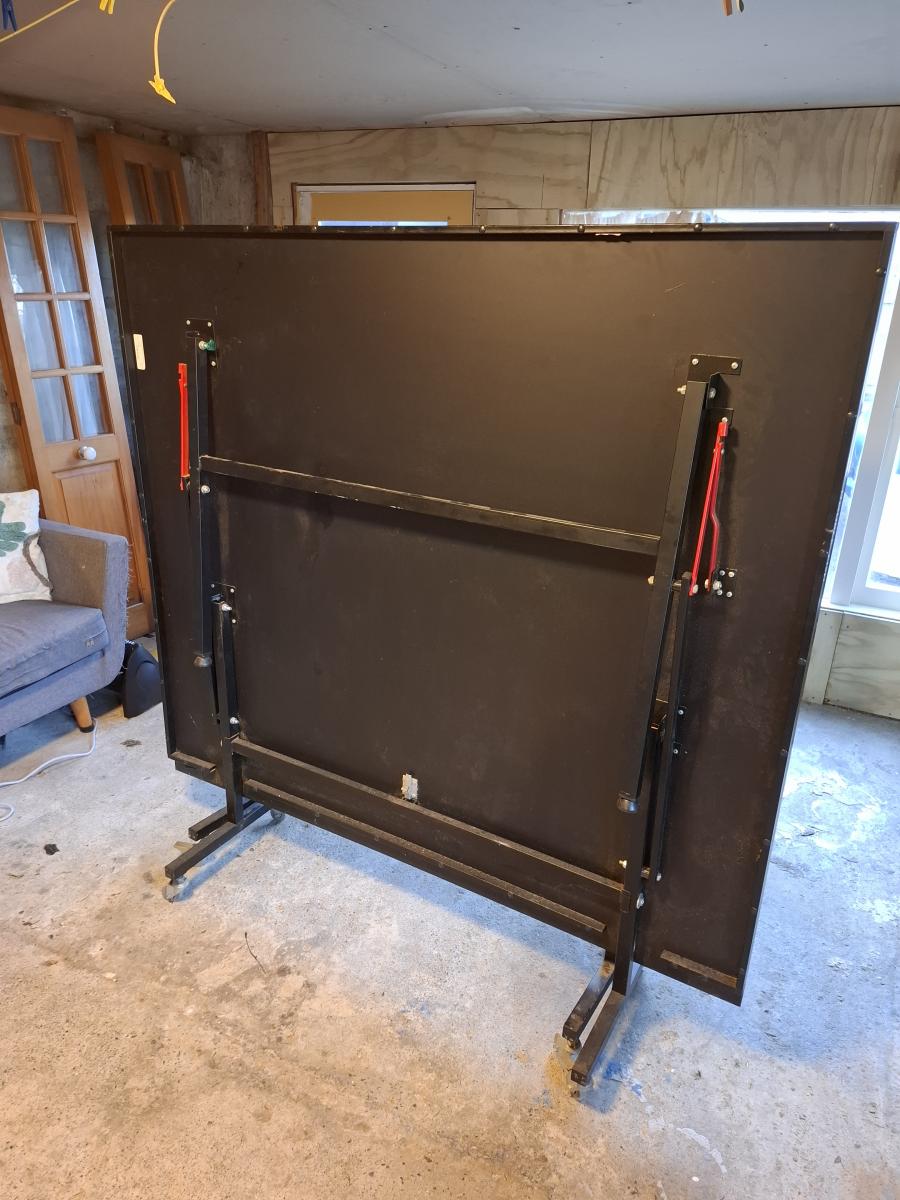 For sale, table tennis table in two halves. Each half tilts up and is on wheels for easy storage. Both halves sit together nice and easy. Good condition, some marks on the surface from general west and tear. Selling as not being used.
