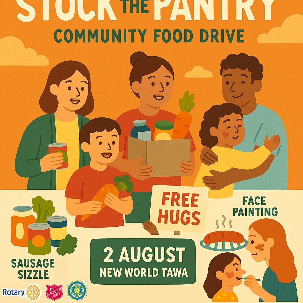 Rotary Tawa, Inner Wheel Tawa, and Salvation Army Tawa warmly invite YOU and your whānau to be part of something special — the Stock the Pantry project! 🥫🧻🥕