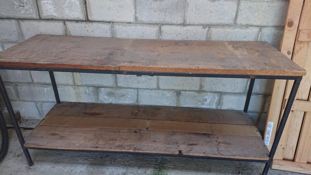 Solid work bench - see photos. Boards come off but frame solid