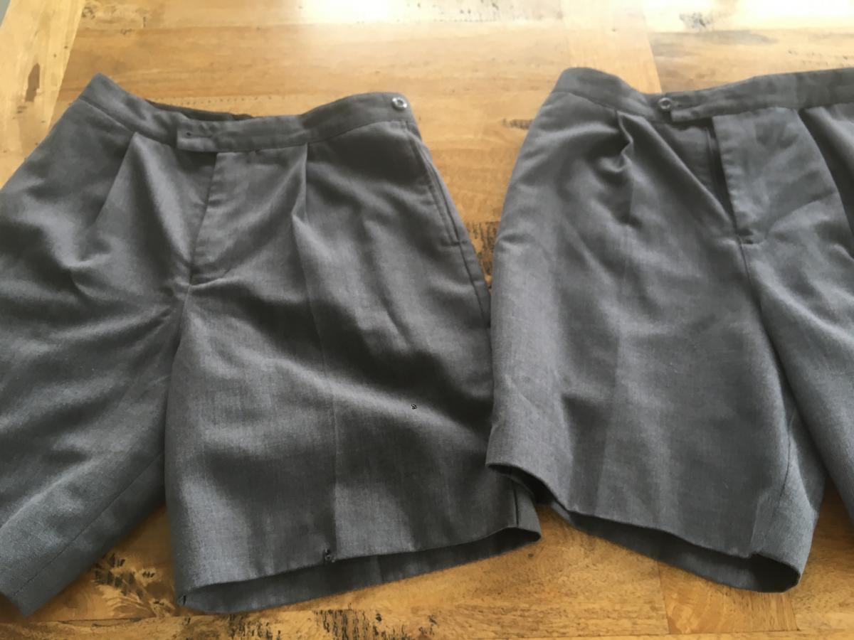 Two pairs of boys shorts size 14 one in excellent condition, $30. One has a 1 cm cut that has been sewn up $25.