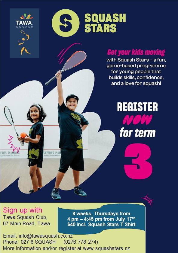 Squash Stars is Squash NZ’s new introductory programme for juniors, designed to introduce 5-12 year old children to squash through fun, game-based activities that build fundamental … View moreSTARTING JULY 17TH, 4PM.