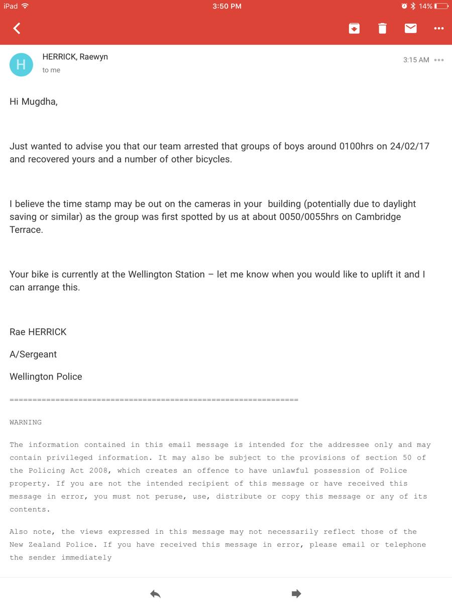 They have arrested the culprits and recovered mine and numbers of other bicycles.