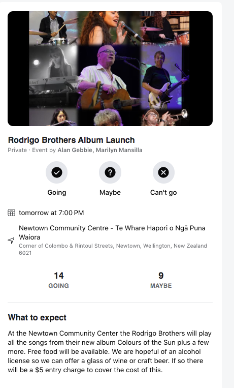 Saturday 15th. This is a sit-down concert. Complimentary drink and nibbles! 9 piece band performing originals and covers.
