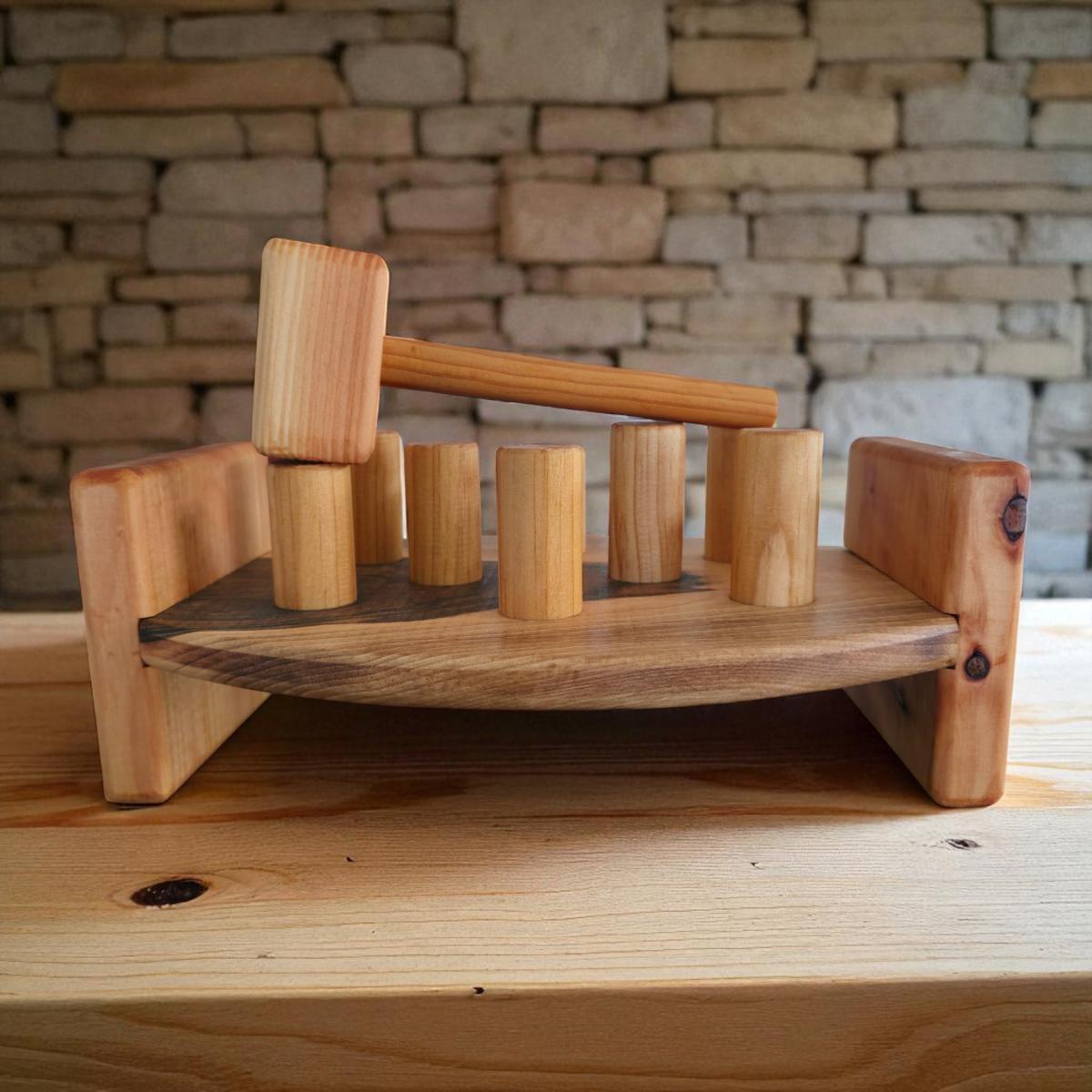 The Wooden Peg Hammer Bench is a classic, hands-on toy designed to enhance fine motor skills and hand-eye coordination in young children.