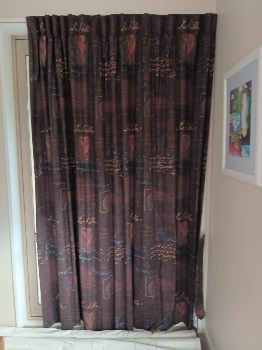 2x roman blinds in used cond fit window size1720 x1565 plus 1size 1740 x1510. Also curtain for door 1380 x1565. Offers?
