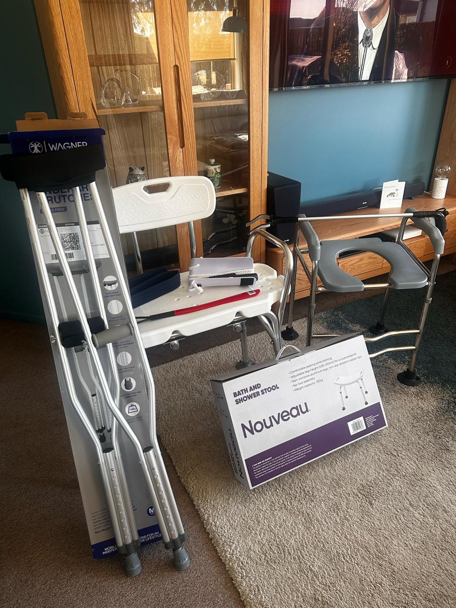 Are you having hip replacement surgery soon. Picture is a collection of equipment you will need at home.