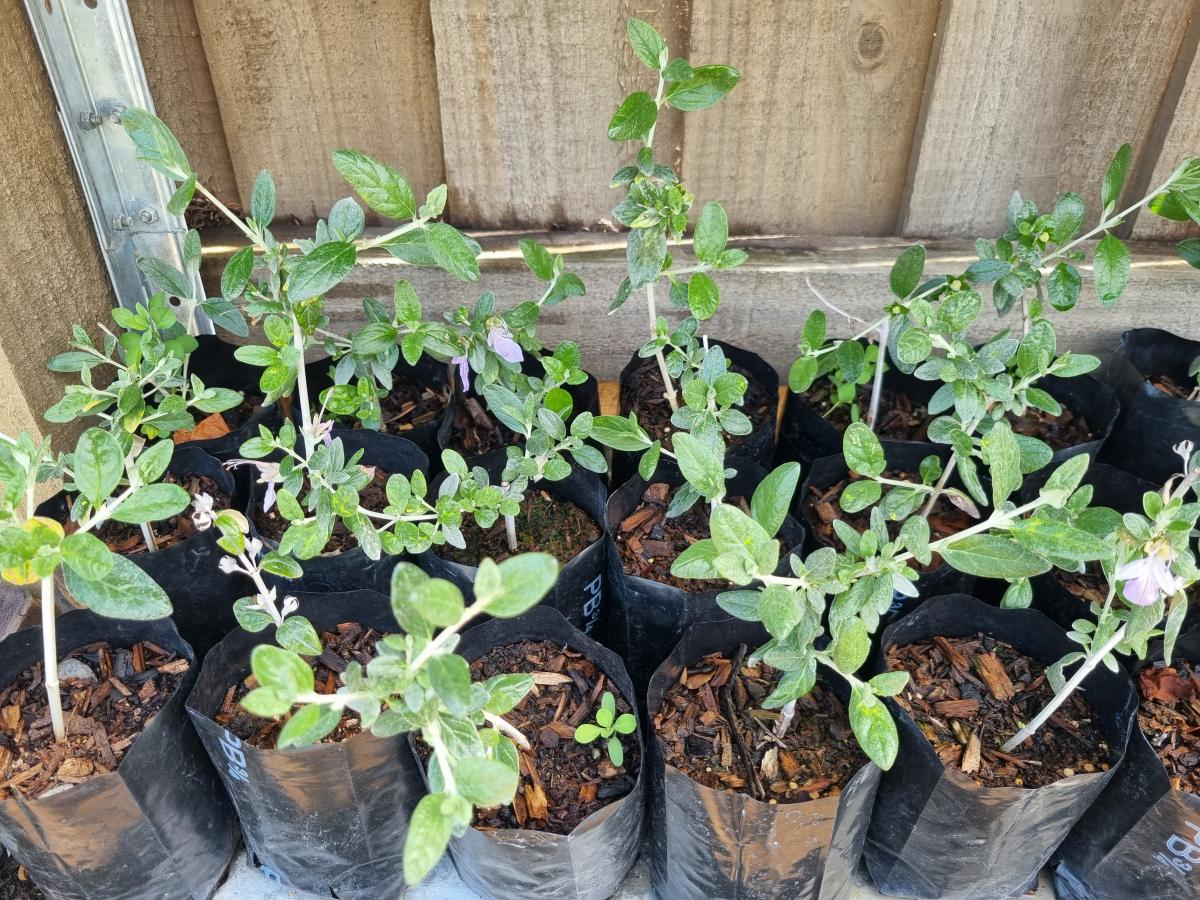 Fast-growing, spreading, drought-tolerant grey shrub. Attractive hedge with pale-blue bee-attracting flowers. Looks great as a trimmed shrub, low shelter or topiary. Great for coastal sites. Low maintenance. Lots available. $3 each