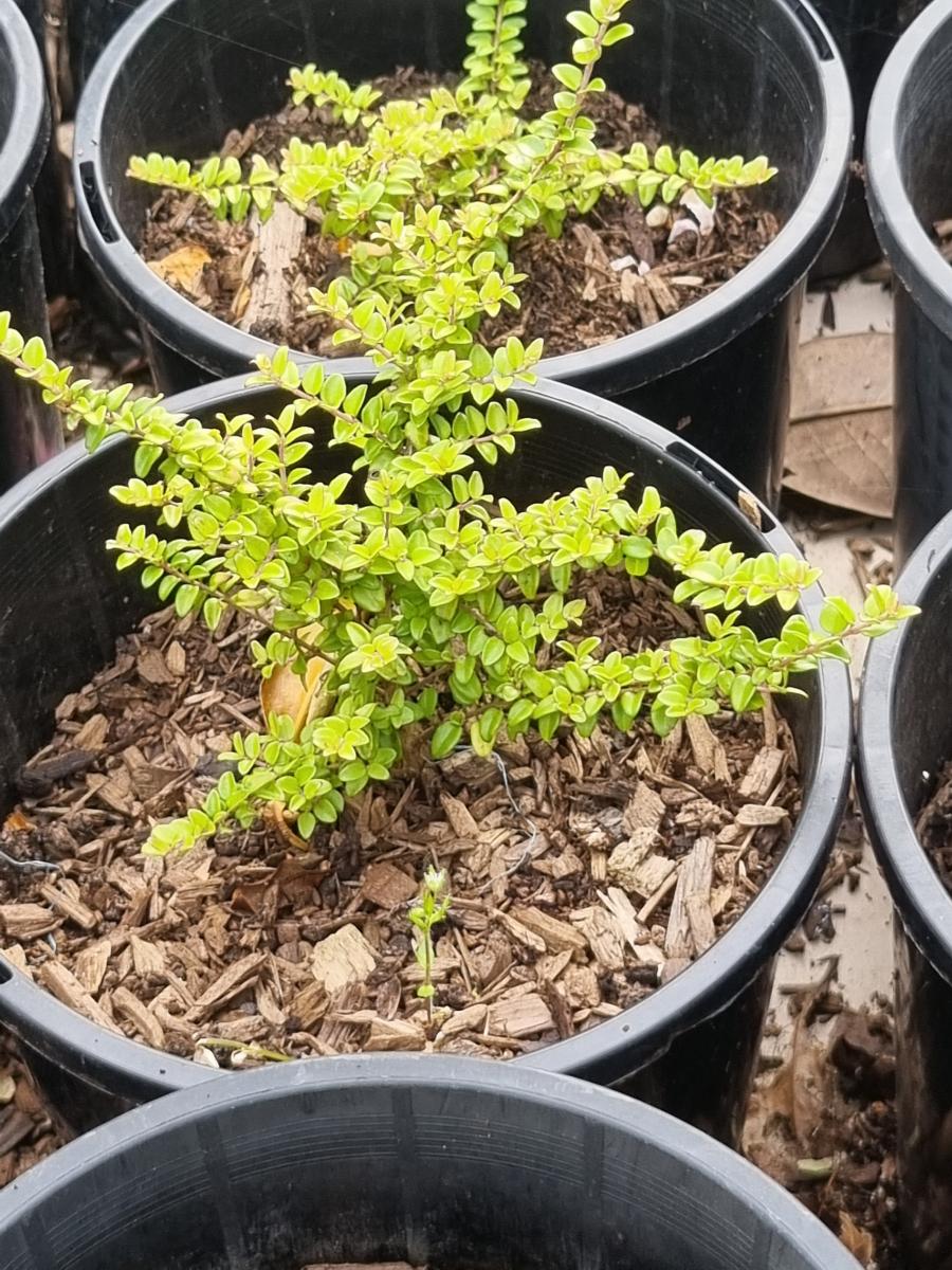 Hardy, NZ native shrub that bears green-yellow foliage. Masses of small, yellow flowers are produced through summer followed by small, yellow berries in autumn. Grows to 3 m tall and the same wide. Commonly trimmed into a hedge, but also makes a great addition to a mixed planting or is used for … View moreHardy, NZ native shrub that bears green-yellow foliage. Masses of small, yellow flowers are produced through summer followed by small, yellow berries in autumn. Grows to 3 m tall and the same wide. Commonly trimmed into a hedge, but also makes a great addition to a mixed planting or is used for planting on those difficult-to-grow sites. Around 50 available. Good size & ready to plant out now. Quick growing. $3 each