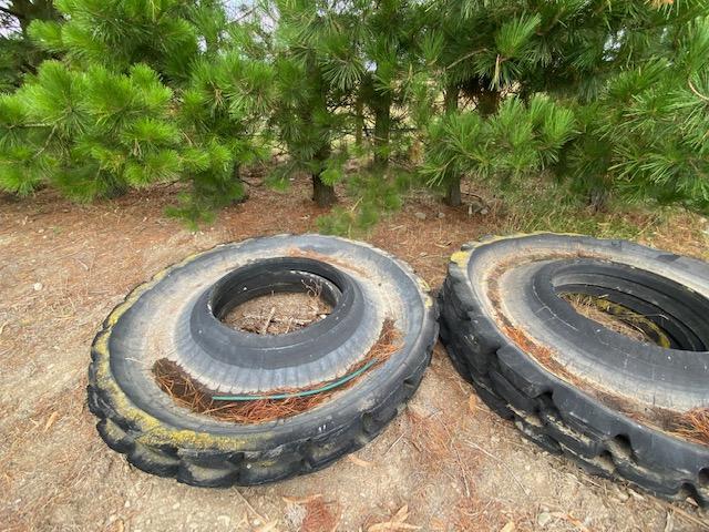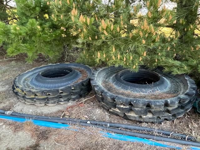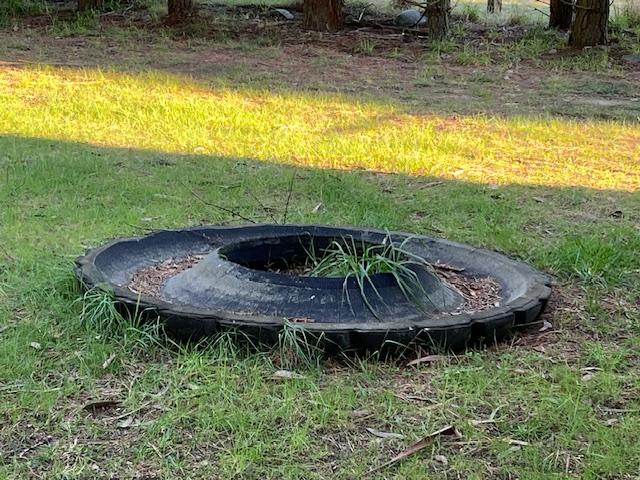 I've got 8 half-round tractor tyres that I've used for feeding out, especially good for making sure that dry feed stays that way and doesn't get soggy / is never eaten 'cos it's lost in the grass.