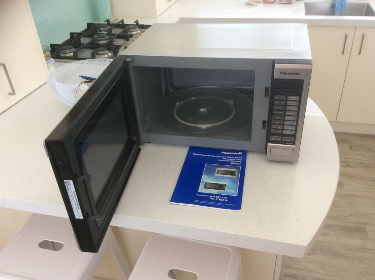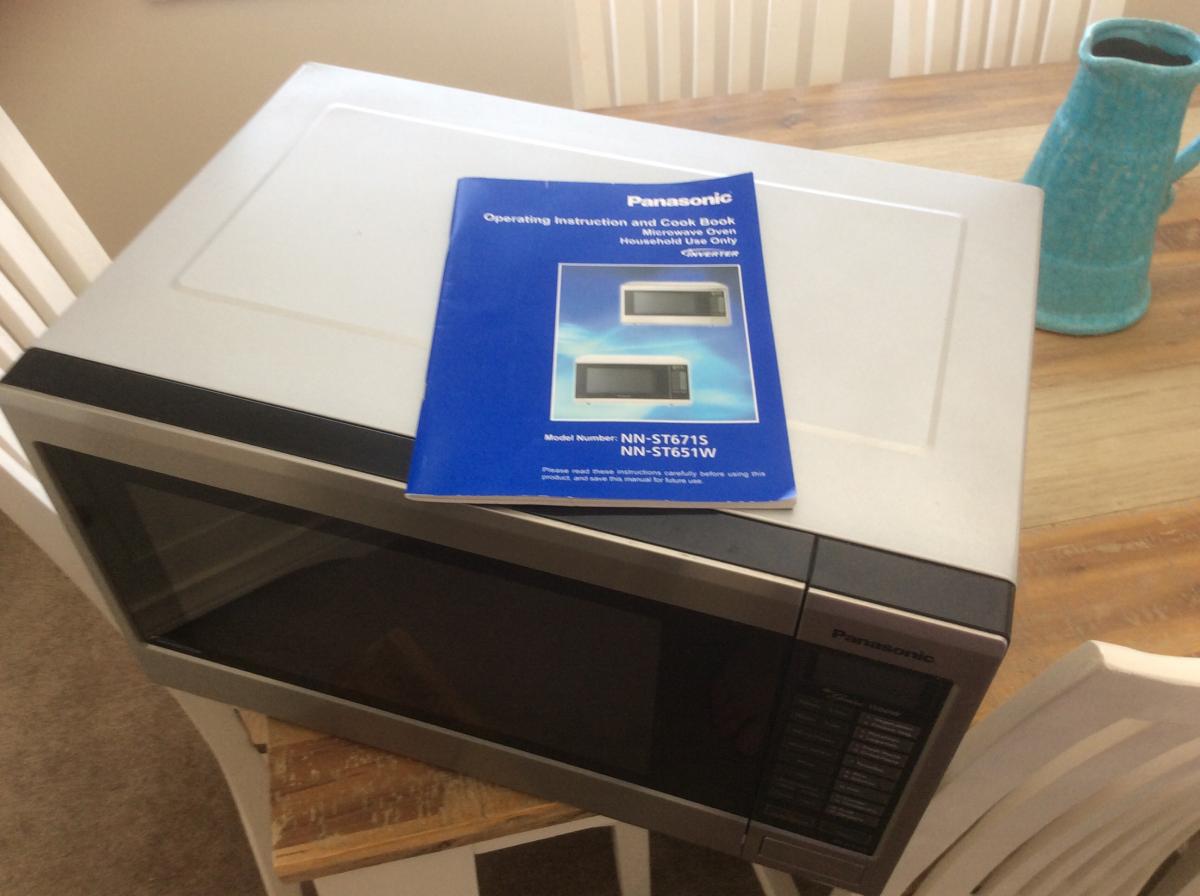Free Panasonic Nn-ST671S Invertor Microwave Oven, has some rust on top inside the oven, glass dish has small chip , otherwise in perfect working order, about five years old, comes with operating manual. We have just upgraded to a newer model,