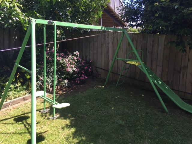 FREE swingset with slide. The two original swings have broken and not included. You can buy replacements from the manufacturer "Hills" or generic swings from Bunnings or Mitre10. Original double-seated rocker swing and slide still included.