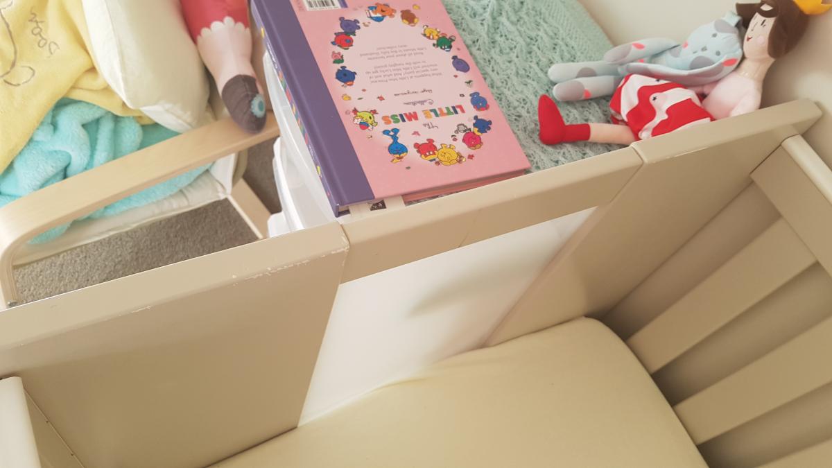 Very good condition, some minor wear on each end as shown in picture but otherwise … View moreStylish designer cot with frosted ends and chew guards, in neutral taupe colour. Would suit any nursery decor