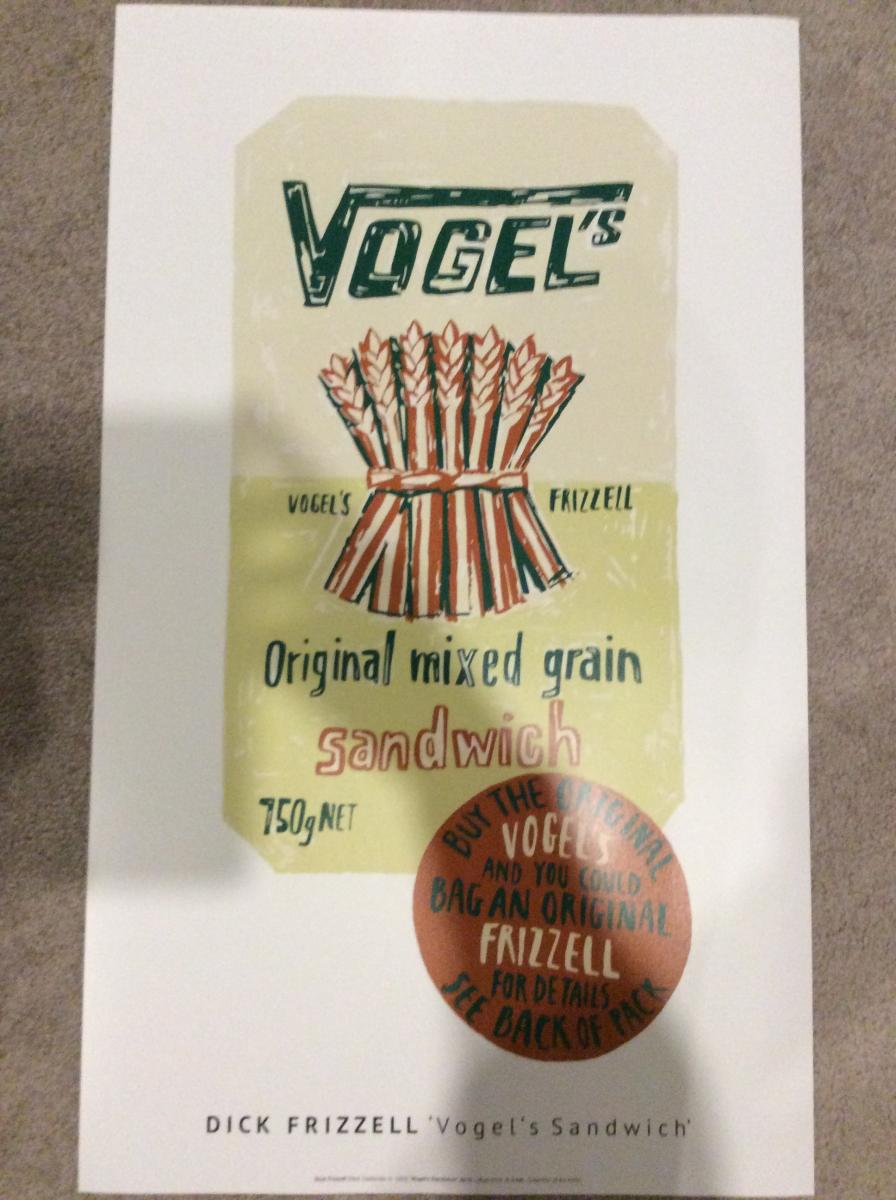 Fantastic art print from Dick Frizzell, Nz's no 1 artist. This is in great condition and was from the vogels promotion of a few years ago. Vogels sandwich is sure to be a highly prized collectable of the future.size is 430 mmx 720 mm and would be stunning in a frame.Can drop off auckland city… View moreFantastic art print from Dick Frizzell, Nz's no 1 artist. This is in great condition and was from the vogels promotion of a few years ago. Vogels sandwich is sure to be a highly prized collectable of the future.size is 430 mmx 720 mm and would be stunning in a frame.Can drop off auckland city most weekends. If interested please txt 021 2045802 not too late or early please
