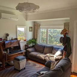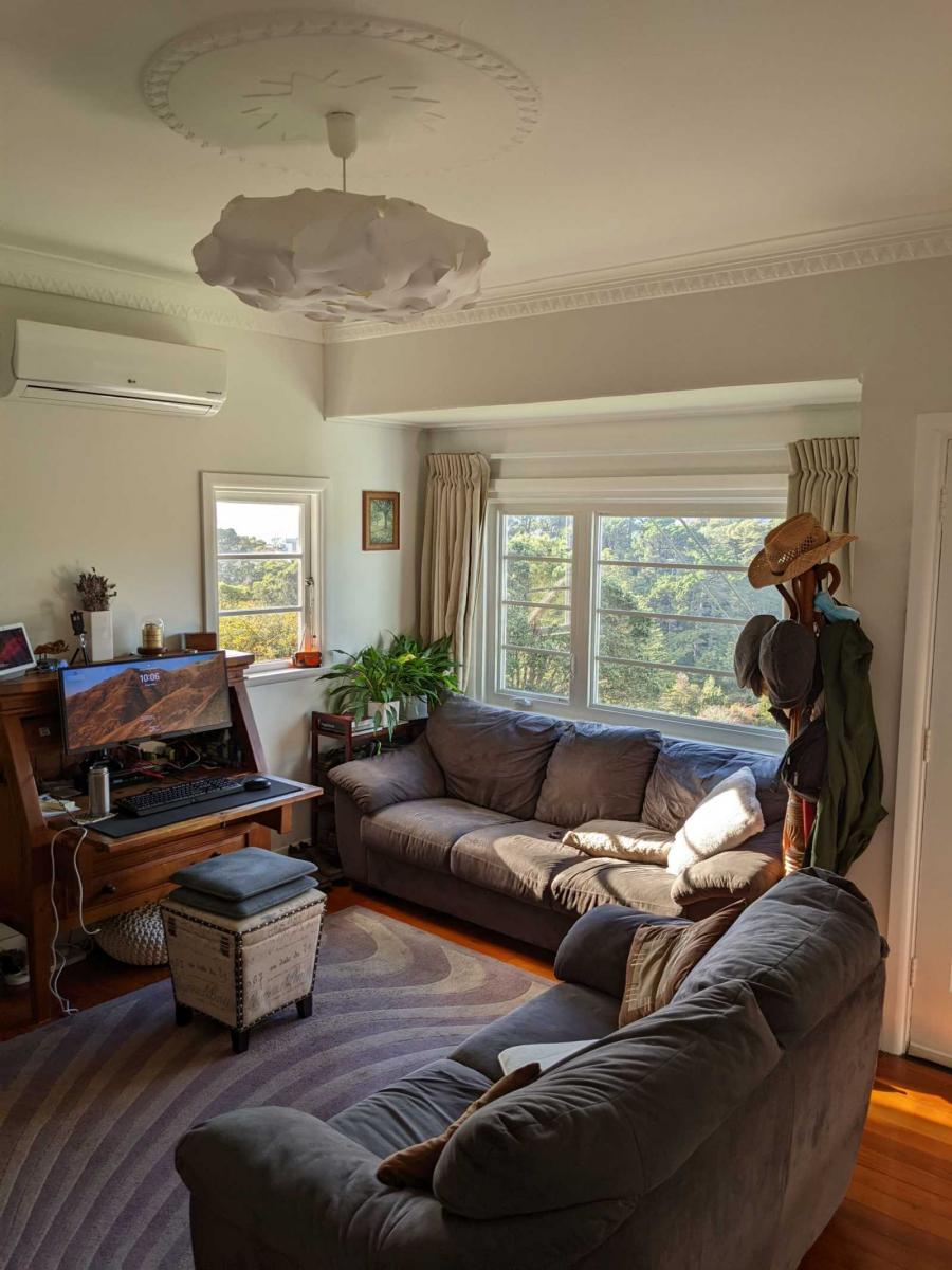 Coffee in the mornings outside year round, sheltered from the southerlies, watching the sun rise over the harbour and listening to the birdsong over the botanic garden tree canopy across the road. Daily bliss. Quiet evenings with double glazed silence and warmth.