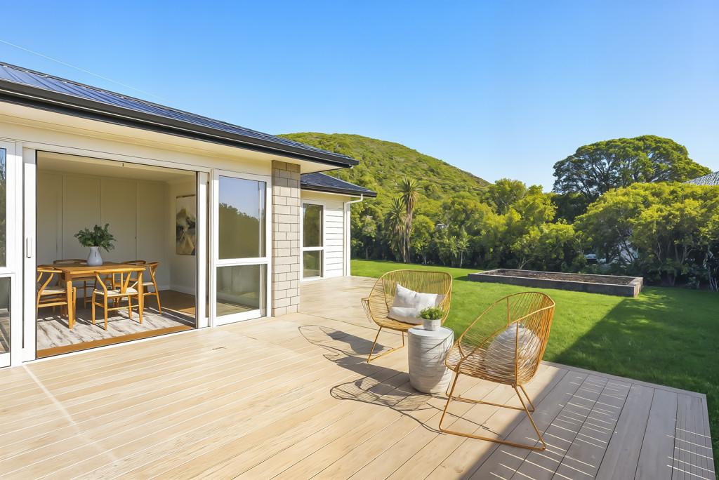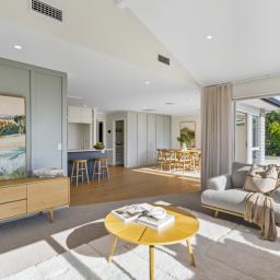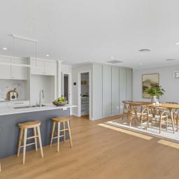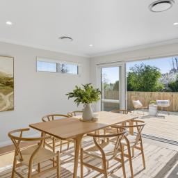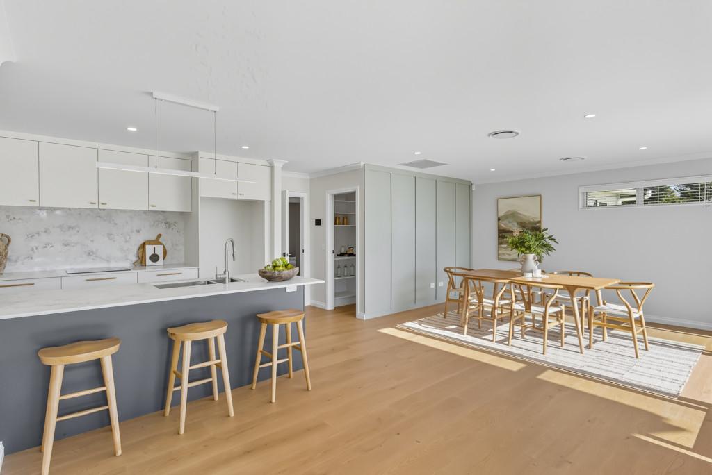 This 200m² residence is thoughtfully designed to maximise space and indoor/outdoor flow. The open-plan living area opens seamlessly onto a north-facing deck, perfect for entertaining family and friends.