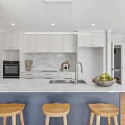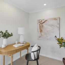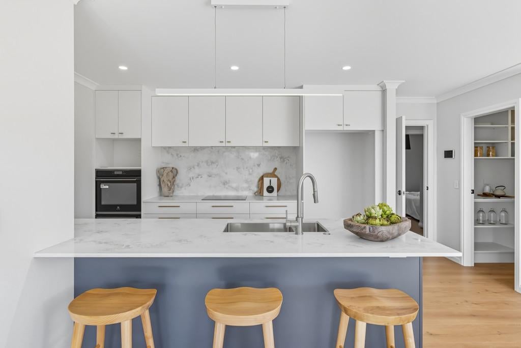 The designer kitchen is a standout feature, complete with a large walk-in pantry. This new home includes three double bedrooms plus a home office. Both the main bathroom and ensuite are beautifully appointed, with a separate toilet for added convenience.