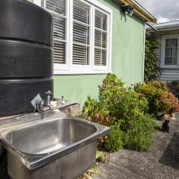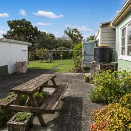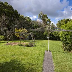 The section is nicely manicured with an array of fruit trees including apple, plum, orange, guava, feijoa, lemon and peach. There is also some nice Staghorn ferns and other mature plants.
