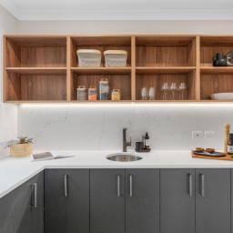 At the heart of the home, a Zen-inspired courtyard connects the living areas with the bedroom wing - a private sanctuary of light, greenery and calm. The interior is rich with refined detail: high-quality stone benchtops, hidden lighting and Beckett mirrors, a beautifully finished kitchen with concealed features, a butler's kitchen and a separate theatre room for immersive movie nights.