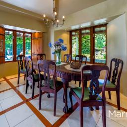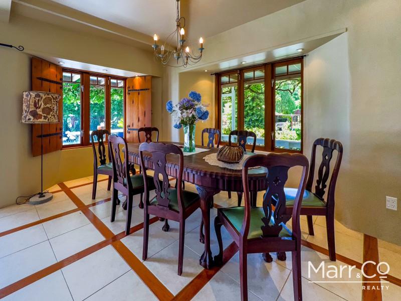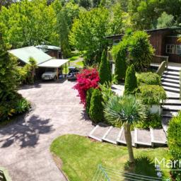 The property features numerous residential and ancillary buildings, including a generously sized colonial style home, a beautiful cottage, two studios, a large entertainment/conference building ideal for gatherings, and a boathouse featuring a spa, all set amidst picturesque landscaped gardens. Two post and rail fenced paddocks are currently accommodating horses, adding to the property’s versatility. Water is pumped from a reliable artesian source into two 20,000 litre tanks, gravity fed to the buildings.