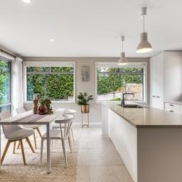 Designed for family living or retirees alike, the open-plan layout includes a modern kitchen, dining, and living area; plus a master bedroom with walk-in-robe and fully tiled en-suite, and two further bedrooms plus fully tiled family bathroom. Well-presented throughout with a light and bright interior with seamless indoor-outdoor flow through ranch sliders from the dining and living rooms to two sun-soaked patios at the rear of the home.