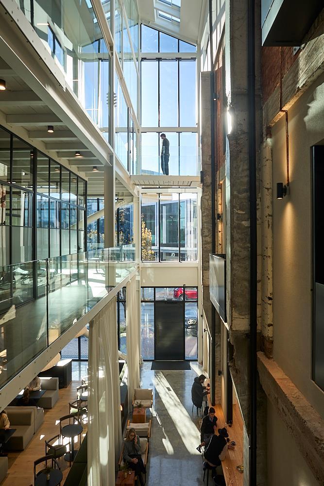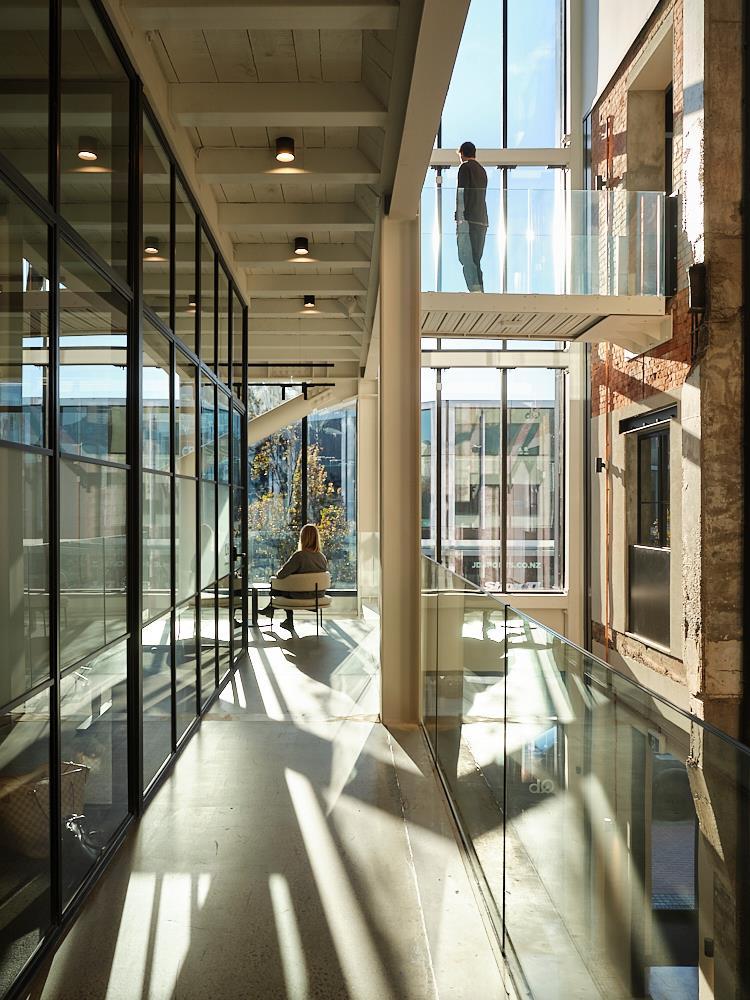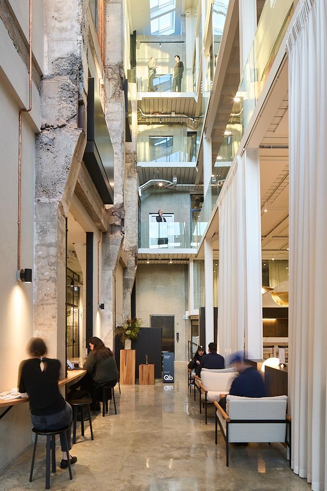 This beautiful architectural space takes full advantage of the original building, fusing it seamlessly with new construction using designer materials and furnishings. At street level an impressive atrium flooded with natural light connects one of the city's most vibrant hospitality hubs, Akin cafe, with an ultra high stud members lounge surrounded by private studios and meeting rooms at mezzanine level.