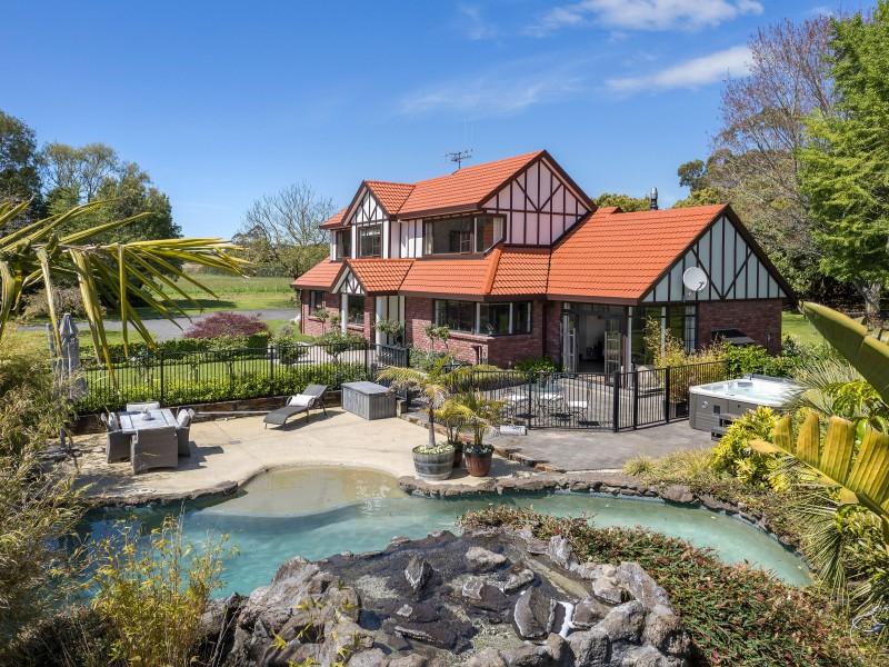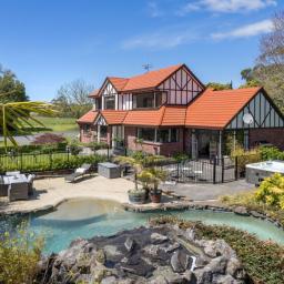 Tucked away down a picturesque cherry blossom-lined driveway, this striking mock-Tudor residence sits proudly on 7319 sqm of beautifully landscaped grounds. A true sanctuary with tropical gardens, a stunning in-ground swimming pool with waterfall, and your own mini avocado orchard.