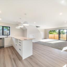 Step inside to find a light-filled open-plan living and dining area, complemented by a sleek contemporary kitchen complete with quality appliances and stylish finishes. Generously sized bedrooms provide plenty of storage, while two well-appointed bathrooms – plus an additional toilet – make busy family mornings a breeze.