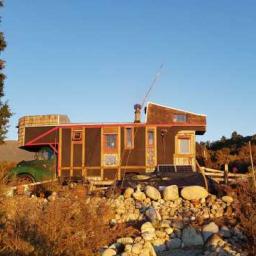 Housetruck and Shower Cabin are equipped with solar power and Gas Califonts for water heating.