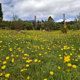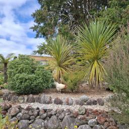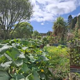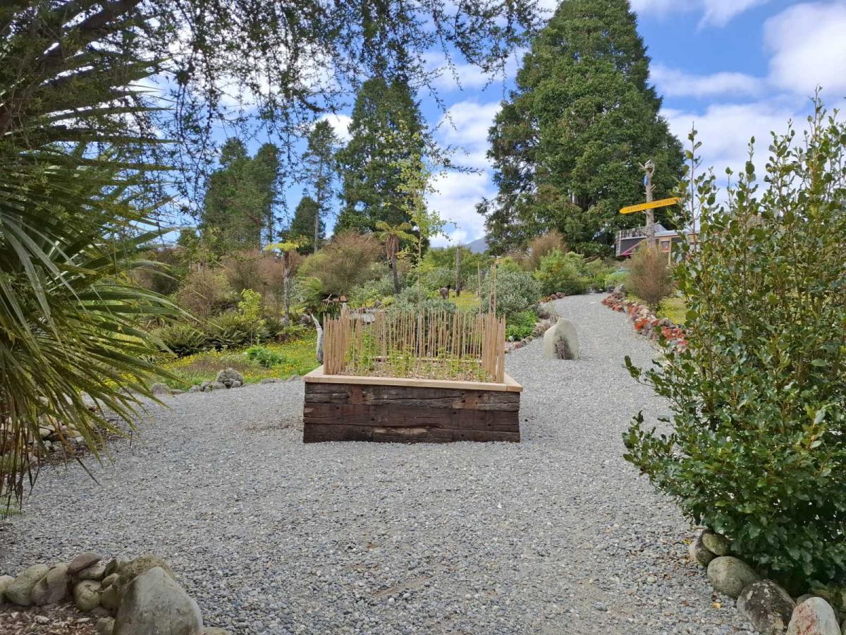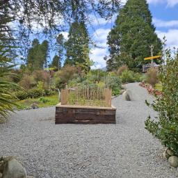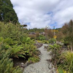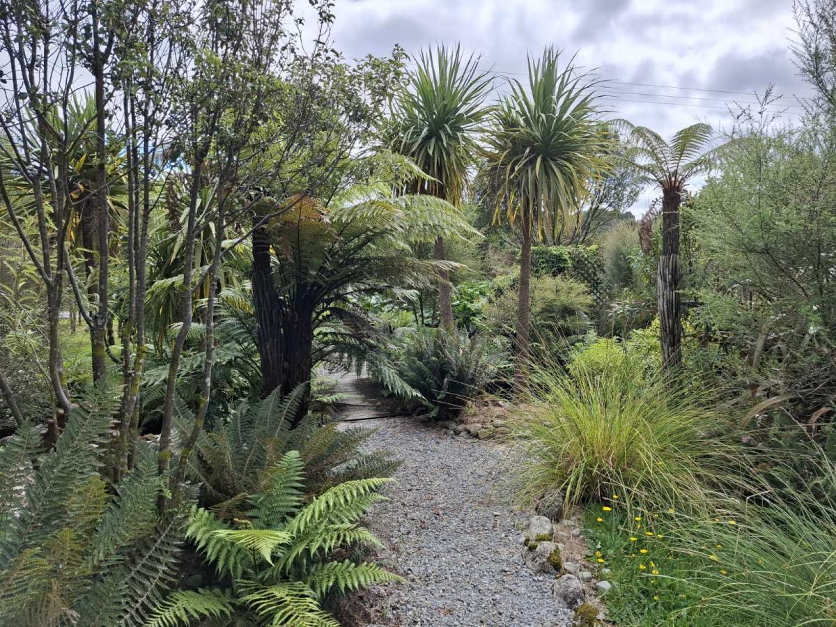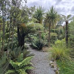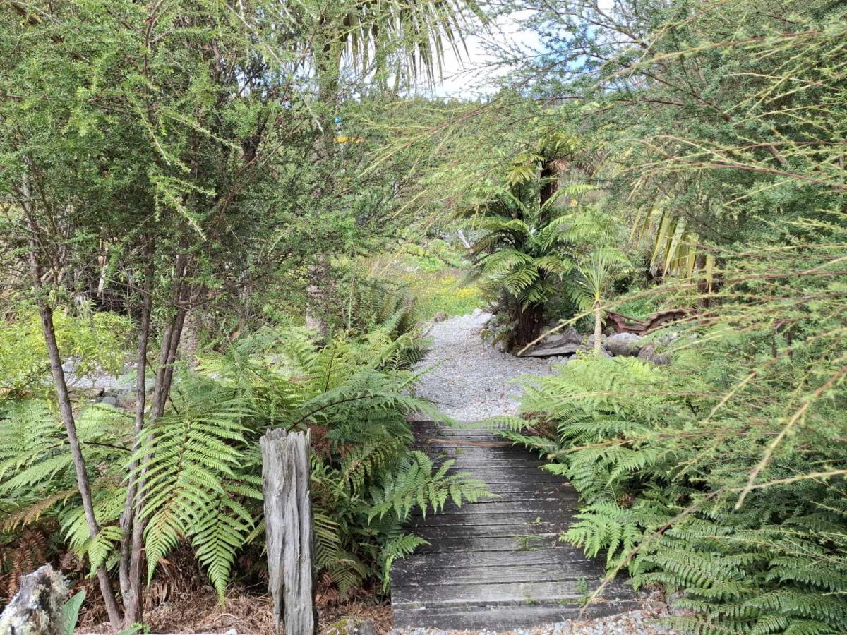 Planted out with a mix of native and exotic trees and shrubs with drawing in native birdlife in mind, and metalled paths lined with stones throughout it's like having your own slice of Hobbiton!