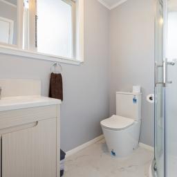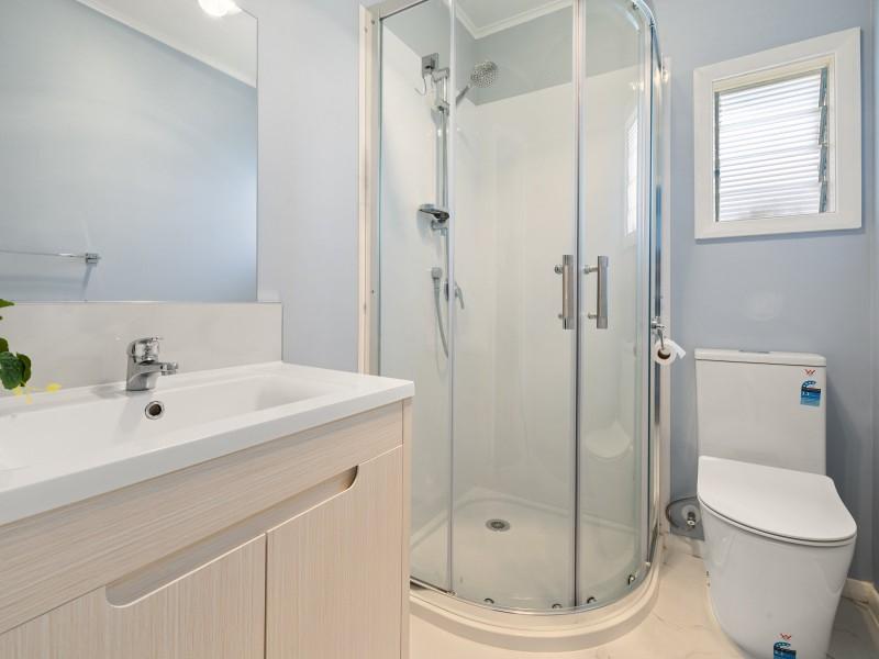 Tastefully renovated bathroom has tiled floors and a natural colour scheme, complemented by three carpeted bedrooms. The master suite offers the added comfort of a heat pump and an ensuite, while a third toilet enhances convenience for family or guests.