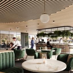 The building comprises two levels of basement parking, three levels of commercial space - including a restaurant - and three levels of luxury apartments. More than 50% of the residential space has already been purchased. The development is a product of the dynamic collaboration between developer, Black & Orange, and architects, Buchan Group.