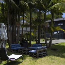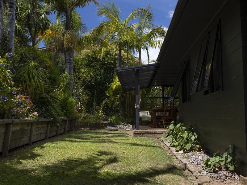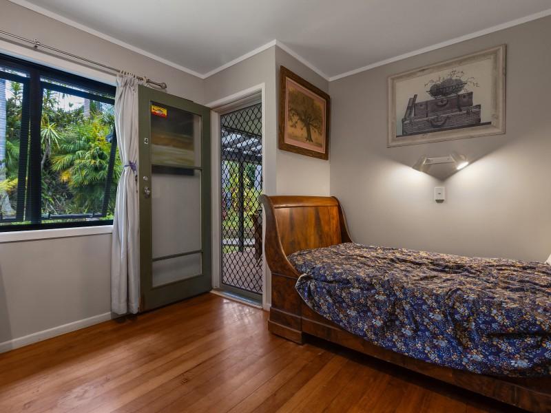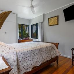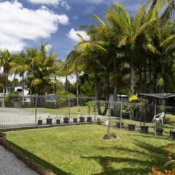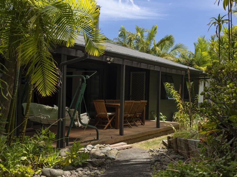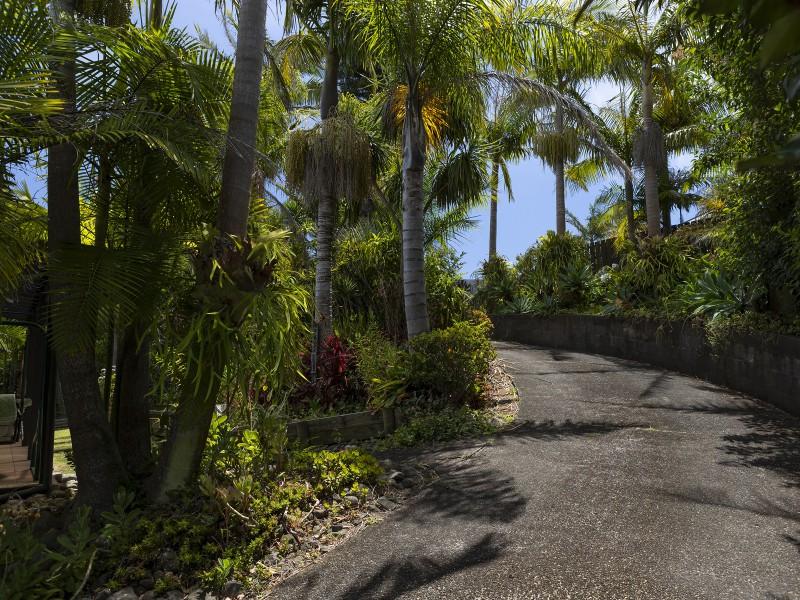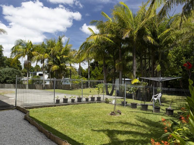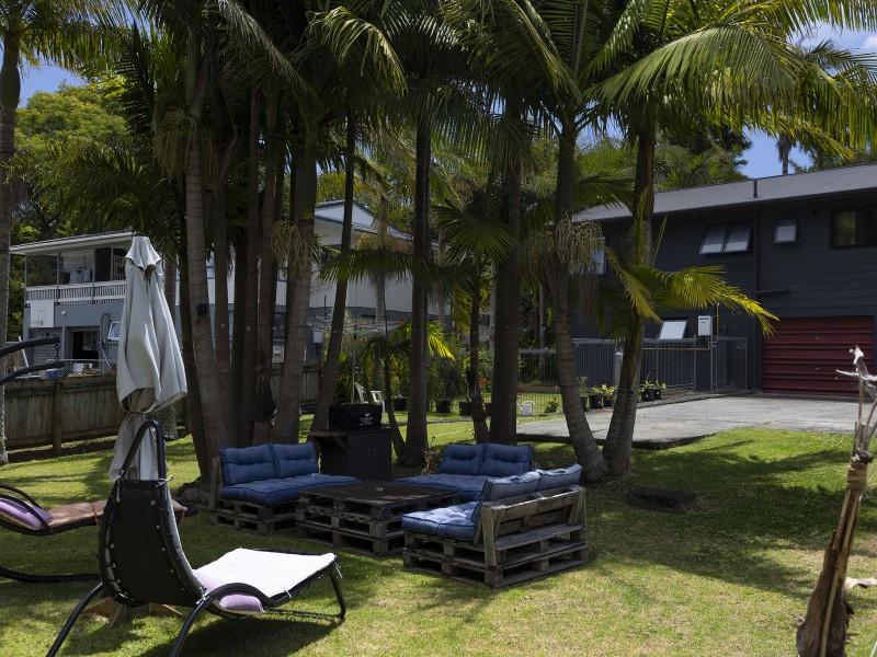 The spacious back yard provides a barbecue area, and a comfortable outdoor lounge, all surrounded by the beauty of palm trees. There is also a fenced area that would be perfect for a swimming or spa pool. Whether you are enjoying the sun or relaxing in the shade, this outdoor space provides a picturesque and peaceful atmosphere, perfect for alfresco dining or simply unwinding in a serene setting.