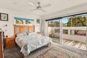 Double sliding doors open onto decks on two sides of the home, with a covered rear deck perfect for relaxing and taking in the peaceful rural views. Practical features include an automatic gate and garage door, a laundry tub in the garage, and an outdoor shower for rinsing off after your beach adventures.