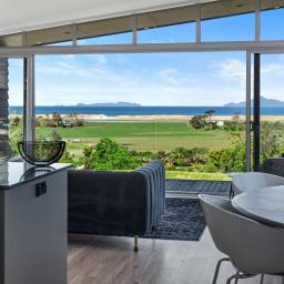 Sand-dunes, sight and sound of the wave. This extraordinary property offers a grandstand panorama of nature's Magnificence. Witness glorious sunrises over the island-dotted horizon, expansive ocean vistas, and stroll the serene estuary below, to fish kayak or swim. Nestled among distinguished neighbours on the ridge of desirable Cove Road, this residence epitomizes coastal Kiwi living. Live in a vibrant beach community in a desirable location, amongst notable substantial homes.