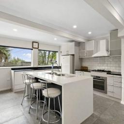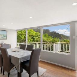 The sunny living area flows easily to a large deck, the perfect place to unwind or entertain while enjoying the sea air. The modernised kitchen connects beautifully to the dining area, and upstairs, the master retreat with its own balcony takes in picturesque water views.