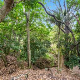 • A beautiful stand of mature native trees has a water course running through it, during the winter