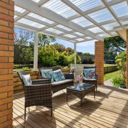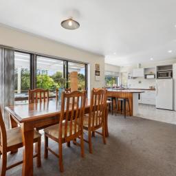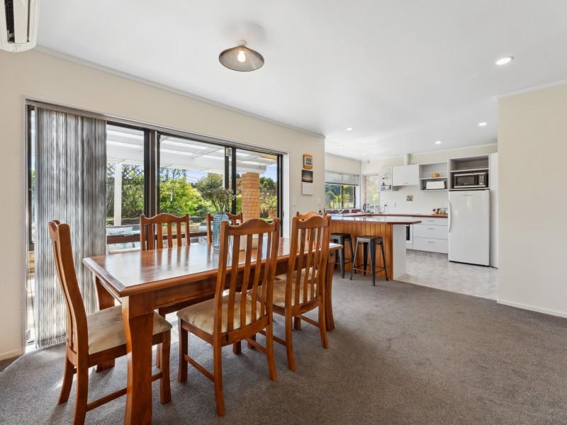 - Open plan kitchen/dining area with doors opening to a north-facing outdoor living area.